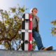 Custom Initials Black, White & Red Stripe