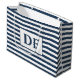 Custom Initials Blue/White Stripes Large Gift Bag