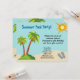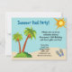 Cute summer pool party or beach party invitation great gor a kids birthday party or beach festivities. Green palm trees, blue flip flops, sunshine, sand and blue sky. Super cute b-day party invite.
