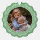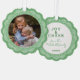 Contemporary classic Christmas holiday season ornament card with ivory cream off-white coloured mandala wreath on a classic light green background. With option and room to customize the text, family name and year date, and add a personal photo of your choice on the front, and a customizable season greeting message on the backside of the card.