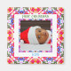 Custom Jolly and Festive Christmas Photo Picture Frame Square Magnet. A colorful and bright fridge magnet. Replace the photo and text with your own to celebrate your Yuletide memories. Give as a stocking filler keepsake gift to family and loved ones. In warm winter colors of red, green and orange and purple. With hints of icy blue. A budget friendly present for grandparents, parents, couples, siblings and best friends. A merry and bright color block pattern frame borders the picture. Based on colorful, traditional designs. Use as a cheap way of decorating the Christmas or home office. Have a maximalist Christmas!