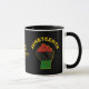 Custom JUNETEENTH Celebrate Freedom Coffee Mug with stylish Freedom Power Fist in Pan African colours of red, black and green, with a yellow drop shadow. The curved heading says JUNETEENTH in bold yellow typography. The design is repeated on the back. The text in the centre says CELEBRATE FREEDOM plus NEVER AGAIN BOUND BY THE YOKE OF SLAVERY and this quote is based on the Christian Bible verse Galatians 5:1. This text is CUSTOMIZABLE so you can replace with your name or with your own inspirational quote. This Pan African Juneteenth Coffee Mug would make an ideal gift for Juneteenth, Christmas, Birthdays, Black History Month, and throughout the year whenever African American Caribbean cultural pride is celebrated. Choose from a wide selection of Juneteenth designs on clothing, home decor, cards and gifts, original designs by Berean Designs.