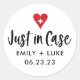 Have fast and easy party favour bags without the high price. This Custom Just in Case Wedding Recovery Kit Classic Round Sticker is the perfect way to make the event you are planning #unforgettable!