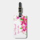 Custom luggage tag is shown in a pretty pink tropical floral print with just married and sample custom names.