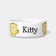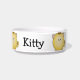 A personalized bowl for your feline friend featuring a cute cartoon cat around the side of the bowl with the name written on both front and back. Change the name for your own cat's name - a perfect gift for a cat lover.