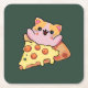Custom Kawaii Cat Hugging Pepperoni Pizza Cartoon Square Paper Coaster