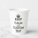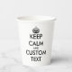 Custom keep calm and carry on paper party cups. Create your own funny parody. Modern typography template with crown. Personalized cups with your own text and colours. Double sided print. Fun for Birthday party, gathering, family reunion, corporate office party, wedding, celebrations, retirement, housewarming, engagement, bridal shower, girls night out etc.