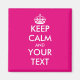 Square Keep calm and your text magnet. Customizable hot neon pink and white template with crown. Create your own funny keepcalmandcarryon typography parody. Custom background colour. Vintage Keepcalm examples for your fridge: Keep calm and carry on. Keep calm and party on. Keep calm and love me.