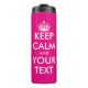 Custom keep calm and your text thermal tumbler mug. Make your own funny keep calm and carry on parody. Vintage keepcalm typography with white crown silhouette. Customizable drink ware for business, home, sports, work, wedding favours or company office.