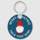 Custom keychain with funny little snow gnome troll drawing. Cute round button key chain with personalized text and colourful illustration. Fun bulk Christmas gift idea for friends, family, coworker, colleague, employee, kids etc. Add your own greeting and (business) name.