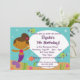 This personalized mermaid birthday party invitation features a cute little ethnic mermaid and fish swimming in the sea. Can be customized as a mermaid party invitation, a pool party invitation, a mermaid thank you card and more.