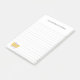 Optional lined post-it notes with custom text at the top, optional lines and art of a set of silverware on a napkin at the bottom