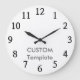 Custom LARGE 10.75" ROUND Wall Clock, Grade-A acrylic Blank Template. J2 EXTRA BOLD Font - All 12 Hours Templated. All hours option also available in the Shop plus dozens of font options. CUSTOMIZE: Simply select "Customize" then delete "CUSTOM Template" & begin to personalize your clock. IF YOU WISH TO CHANGE THE SIZE OR COLOR OF THE NUMBERS: Simply "select all" in Edit Options, then click on the Font Size or Colour drop down menus to change them. Design your own personalized, customizable wall clock. All font and style options available as templates. Great for a birthday, Christmas, Father's Day, Mother's Day or other celebration gifts for him, her, a teenager, a boss, work colleague, a friend, or for your home or office.