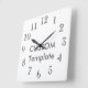 Custom LARGE 10.75" SQUARE Wall Clock, Grade-A acrylic. CASLON OPENFACE, Script Traditional Font. Hundreds of other font options available. See the shop http://www.zazzle.com/customclocktemplates for all clock template options. Design your own personalized, customizable wall clock. CUSTOMIZE: Simply select "Customize" then delete "CUSTOM Template" & begin to personalize your clock. IF YOU WISH TO CHANGE THE SIZE OR COLOR OF THE NUMBERS: Simply "select all" in Edit Options, then click on the Font Size or Color drop down menus to change them. Personalized birthday, Christmas, Mother's Day, Retirement, Anniversary celebration gifts for her (mature, older woman, senior, seniors, wife, mother, grandmother, grandma, granny, nana, elderly woman, women).