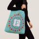 Attractive range of bags with custom initials on a patterned background of psychedelic mandala.