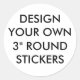 Custom print, personalized, customizable 6 LARGE GLOSSY finish 3" ROUND GIFT WRAP, CARD & INVITATION ENVELOPE STICKERS Blank Template (also available in Matte finish). Design, create, make your own. Your photo, image, text, logo, graphics in full colour full-bleed edge-to-edge print. 6 stickers per sheet. Printed on white acid-free paper, with scratch-resistant front and easy peel-and-stick back. Best for Christmas, wedding, birthday gifts, wrapping paper, cards and envelopes; scrap booking; kids’ activities; DIY and craft projects.