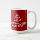 Custom large oversized Keep Calm jumbo coffee mugs. Personalized big extra large size KeepCalm coffeemugs. Personalizable template with vintage typography and crown. Cute Birthday or wedding favour gift idea for men and women. Customize background colours ie dark red. Create your own funny KeepCalmandCarryOn parody cup. Simply edit the text of this template to make your own unique keep calm and carry on design. Humourous quotes and sayings: Keep calm and drink tea. Keep calm and love me. Keep calm and drink coffee. Personalized mugs are a great gift idea for friends and family.