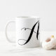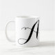 Custom, personalized modern, minimalist black and white typography script font monogram initial and name template coffee cup mug gift.