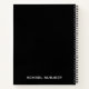 This left-handed notebook features a classic black cover with your school subject or custom text in white typography at the bottom. The spiral is located on the right side, making it a perfect fit for lefties. With plenty of lined pages inside, this notebook is great for organizing school assignments and jotting down notes in the classroom.