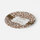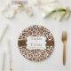 Chic, modern, pretty wild animal big cats leopard print paper plates in brown, tan, and cream with a brown stripe and white edged with brown banner that you can personalize with the wedding couple's names and wedding date!