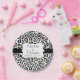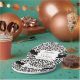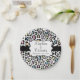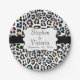 Chic, modern, pretty wild animal big cats leopard print paper plates in black and white with splashes of melon, yellow, pink, blue, green, and lavender with a black stripe and white edged with black banner that you can personalize with the wedding couple's names and wedding date!