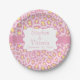 Chic, modern, pretty wild animal big cats leopard print paper plates in pink and yellow with a pink stripe and white edged with pink banner that you can personalize with the wedding couple's names and wedding date!