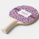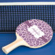 Cool animal purple and lavender leopard print ping pong paddle with print on both sides, front has a purple stripe with a white edged with purple banner you can personalize with your monogram initial and name!