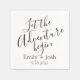 Modern script Let the adventure begin custom personalized add your names and date simple, modern, elegant handwritten font wedding napkins.