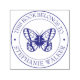 A book stamp makes a thoughtful personalized gift. Perfect for any book lover, teacher, professor, librarian and it would be a great graduation gift. This stamp design features a butterfly illustration with two sections of text around a circle, the top text (this book belongs to) with a name underneath but you can specify any wording as long as it fits within the space. You can customize further by choosing an alternative font but not all fonts will be suitable for this design and we recommend keeping close to the template design.