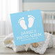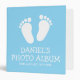 Custom light blue baby book photo album binder. Personalized 3 ring binder with little feet silhouette.