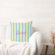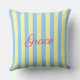 Custom decorative and practical trow pillow, designed with light blue and yellow stripes, personalized with the name of the recipient in hot pink. Easy to personalize! Perfect as a gift, ideal to add a fresh touch of personality to any room. More versions and matching articles with original designs are available in my collections. Feel free to contact me if you need any help to customize this or other items from my store.
