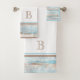 Custom Light Teal Aqua Blue Taupe White Stripes Bath Towel Set