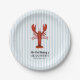 Enjoy our custom nautical red lobster boil blue stripe paper plates.
