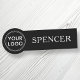 Black or any color name tags branded with your custom business logo. Customizable name in an elegant serif font and title/company name below. You can change the font and background color, move and resize elements with the design tool.