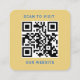 Modern yellow Custom Logo and QR Code Square Square Business Card design features your business logo and custom QR code on the back. Customize the wording with your preferred business information, such as the business name, address, phone number, or website. Black background and white text colour can be changed.