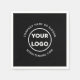 Host a branded corporate event with black party napkins featuring your company logo, website, and name or slogan to increase your business marketing reach. Replace the sample logo and text with your own in the sidebar. White or light coloured logos will work best with this design. If you want the background colour to show through your logo, upload a version of your logo with a transparent background.