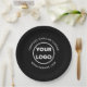 Host a branded corporate event with black party plates featuring your company logo, website, and name or slogan to increase your business marketing reach. Replace the sample logo and text with your own in the sidebar. White or light coloured logos will work best with this design. If you want the background colour to show through your logo, upload a version of your logo with a transparent background.