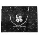Available in matte or glossy finish, promotional gift bags custom branded with your business logo add a professional touch to your corporate gifts, giveaways, and retail shopping bags while advertising your business. Made by Digiwrap. No minimum order quantity and no setup fee. This bag is set on a chic black metallic faux foil textured metalic print backgroubd with simulated sparkles and glitter glistening, ready for your business logo or other graphic.