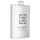 The product is a good size and came exactly as it was pictured. The lid is not attached to the flask, which could be dangerous on drunken nights... The print came out surprisingly well and looks very sharp. Would definitely recommend.