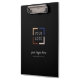 Simple custom company logo with slogan and website address on colour editable black background, no minimum order quantity and no setup fee, great business clipboard with logo.
