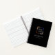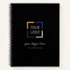 Simple custom company logo with slogan and website address on colour editable black background, no minimum order quantity and no setup fee, great business notebook with logo.
