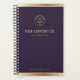 Organize your daily tasks with this luxurious custom business logo planner design. A deep royal purple backdrop is beautifully accented with bold gold foil details, creating a regal and sophisticated aesthetic.