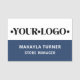 This stylish dark blue Logo Employee Name Tag is easily customizable with your logo, name, and job title. There are options for a traditional pin back or a magnetic fastener.
