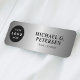 Elegant minimalist modern business corporate executive staff professional identification magnetic or safety pin name tag template with custom company logo over a faux silver metallic gradient background. ++++++++++++ Easy to personalize with your details.