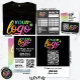Front & Back FULL COLOR print, over a QUALITY UNISEX black t-shirt, which you can change to a colour that makes your logo stand out.