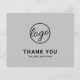 Custom budget business thank you card featuring a minimalist design with your logo on the front along with "Thank you for your purchase". The backside has your personal message. A basic and plain design that still comes across as professional. This simple thank you card is great for any type of business, big or small.