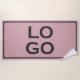 This custom beach towel features a dusty pink or blush coloured background with a black frame. A sample logo is placed in the centre. You can personalize the mat and add your own custom company or professional business logo, or your own image of your choice.