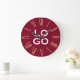 This simple yet sophisticated custom wall clock features a dark red or burgundy colored background with a sample company of business logo placed in the center. You can personalize the clock to add your own company or business logo, or other custom image. The hours are printed in a gold foil design, Roman numeral pattern.