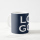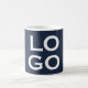 This simple yet sophisticated custom coffee mug features a dark navy blue colored background with a sample company of business logo placed in the center. You can personalize the mug and add your own company or business logo, or other custom image.