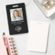 Introducing the Custom Corporate Logo Photo Name & Title Badge – the perfect solution for professional identification with a modern, minimalist touch. This sleek black badge is designed with your business needs in mind, offering easy personalization to fit your brand. The badge features your corporate logo on both the front and back, along with a designated space for a square photo, name, title, and optional additional text.